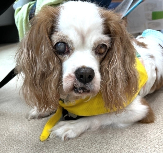 | 特徴(性格など) | 性格・特徴 【性格】 人懐こく、人の気配を感じるとシッポをブンブン振って寄ってきます。目がほとんど見えていない為、環境に慣れるまでに時間はかかりますが興味津々でゆっくり探索しています。 人が大好きな甘えん坊さんの可愛いくて健気な女の子です。 【ご飯】 ドライフード(シュプレモでお願いします)50gを1日2回食べてます。食欲旺盛です。 フードは急な変更でお腹を壊さないようシュプレモでお願いします。 【お散歩】 お外に慣れる所から始めています。 引き続き、トレーニングお願いします。 迷子札は、首輪に刻印式のIDカラーで装着して頂く事と、ダブルフック型ショルダーリード使用のお約束をお願いします。 【トイレ】 トイレシートの認識はまだありませんので、引き続きトレーニングお願いします。 トレーニングのご相談は承りアドバイスさせていただきます。 【お留守番】 サークルでお留守番できます。 (ソフトサークルは禁止とさせていただきます) 健康状態 ※ 医療に関しまして、当会では、里親様にお繋ぎするまでに、検査や手術、治療等のレスキュー団体で出来る最大限の努力の上で譲渡活動を行っております。ご理解頂ける方のみご応募ください。 名前 グレースちゃん 犬種 キャバリア・キングチャールズ・スパニエル 年齢 9歳ぐらい(推定) 性別 女の子 体温 38.3℃ 体重 5.52kg 口腔 歯石除去 歯肉炎等処置済み 皮膚 腰の辺りのイボ切除済み 眼 白内障のためほぼ見えていないと思われます 心雑音 4/6 心電図 異常無し 検便検査 異常なし 血液検査 異常なし フィラリア検査 陰性 予防薬投薬済み(2022.6.1) レントゲン 心肥大 エコー 僧帽弁閉鎖不全症 避妊手術 済み ノミダニ予防 済み 虫下薬投薬 済み ワクチン 接種済み(2022.5.31) 狂犬病予防注射 猶予証明書取得済 畜犬登録 済み 【特記事項】 ・心雑音4/6だった為、心臓の検査を行いました。 僧帽弁閉鎖不全症の診断により投薬開始していますが、現在症状も無く日常生活に支障はありません。今後も定期的な検診をお願い致します。 ・エコー検査により子宮蓄膿症の恐れが濃厚でしたので避妊手術をいたしました。 |
