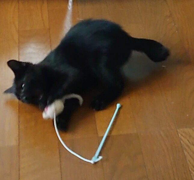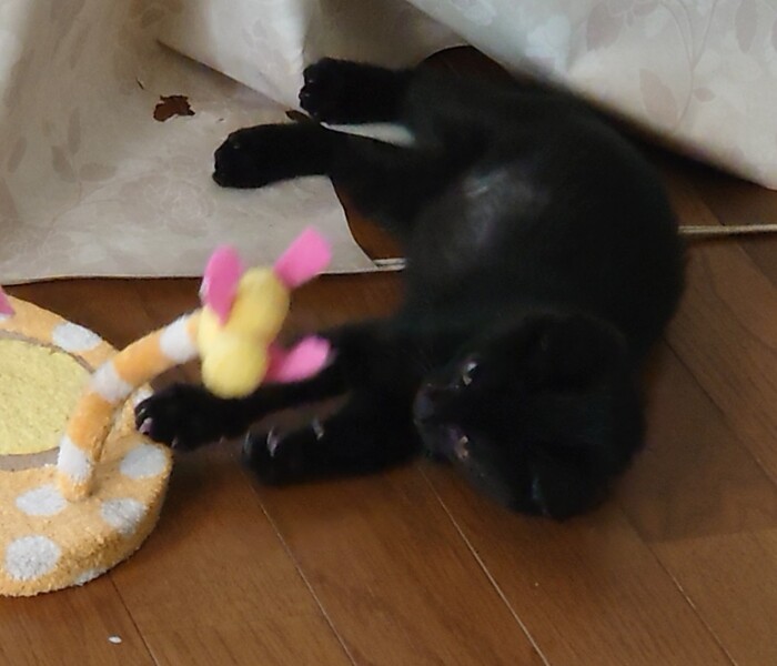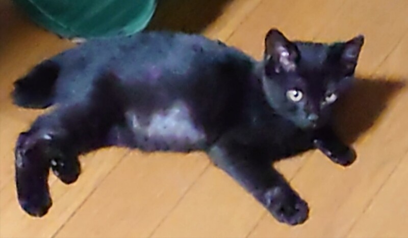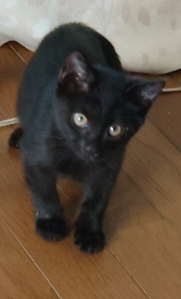 | 特徴(性格など) | 人慣れをしています ナデナデはできますが、あまり、抱っこは好きでないようです 全身黒毛の男の子です しっぽの先端が房のようになっていて、ちょこまかと振る姿がキュートです |