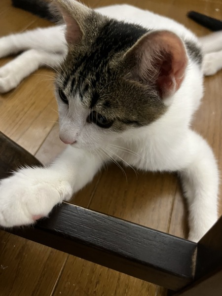 | 特徴(性格など) | わが家に来て、最初は逃げ腰でしたが、当日から直ぐに慣れ、手からもオヤツを食べてくれました。 先住猫と先輩預かり猫たちと毎日元気に運動会をしています。 検便、ノミダニ駆除済み 猫エイズ、猫白血病陰性 ワクチン未接種(近々接種予定) |