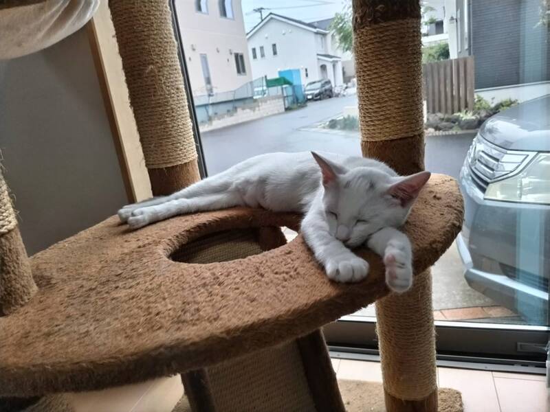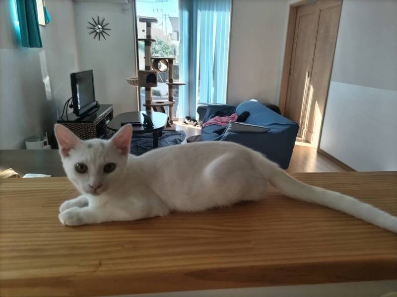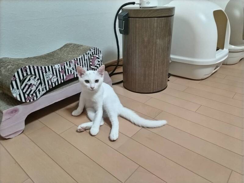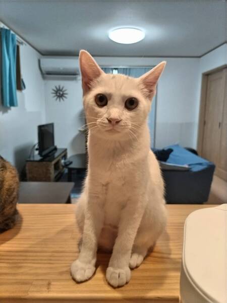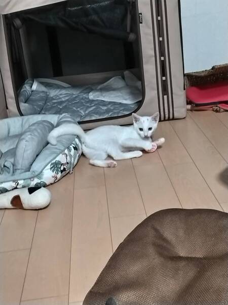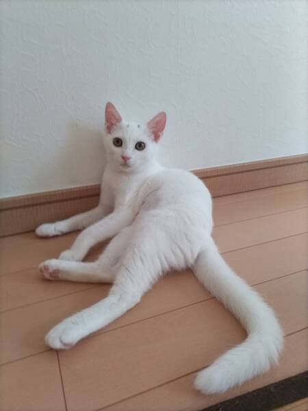 | 特徴(性格など) | 2022.5.5生まれ(推定) 毛色:白 真っ白な毛柄にキトンキャップと思われるグレーの眉模様があります。 尻尾はスラッと長いです。 ボールで遊んだり、姉妹とニャンプロして遊びます。 大人猫にも甘え上手! お昼寝は快適な場所を見つけて早々に寝てしまうマイペースタイプ?! 座り方が独特で女優さんのようなセクシーな座り方がとっても可愛いです(≧▽≦) |
