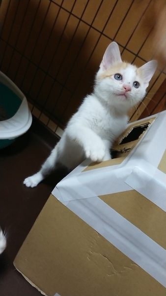 | 特徴(性格など) | 三毛♀は好奇心旺盛でおもちゃで遊ぶのが大好き。 茶白♂はおっとり系で食いしん坊。 二匹でドタバタ遊んでいたかと思うと、くっついて寝ています。 トイレ、食事(カリカリフード)はばっちりです。 |