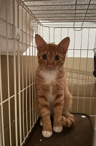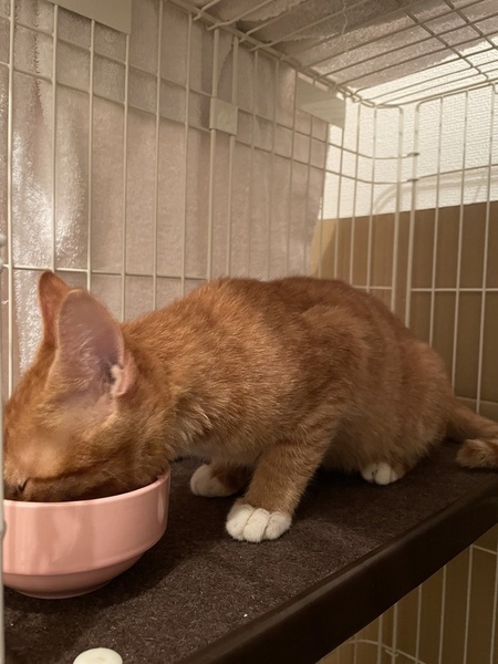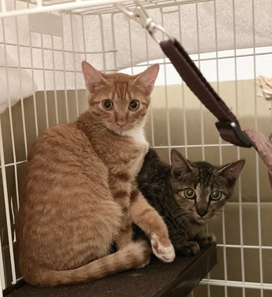 | 特徴(性格など) | 【チャトラ】 ◉ 食いしん坊で、うーーと唸る割に、部屋から人間が居なくなると寂しがって鳴いて呼び続けます ◉チュールや孫の手を使って餌を与えながら触れることは可能です 【キジトラ】 とってもびびり屋さん。 1匹だとずっと固まってます。 食欲はしっかりありますが、チャトラが先に食べ終え、餌を奪われ、譲ることが多々あります。 チャトラの姿がないと寂しがります。 |