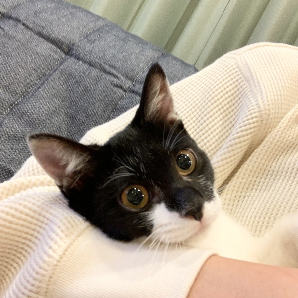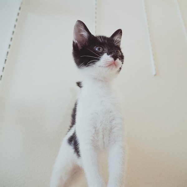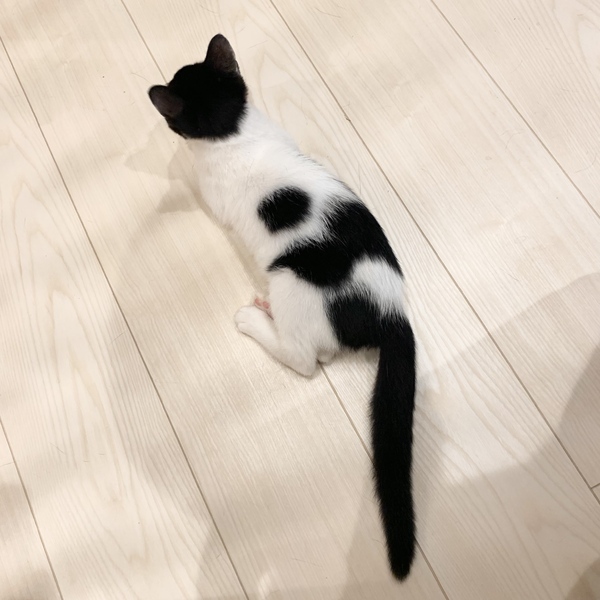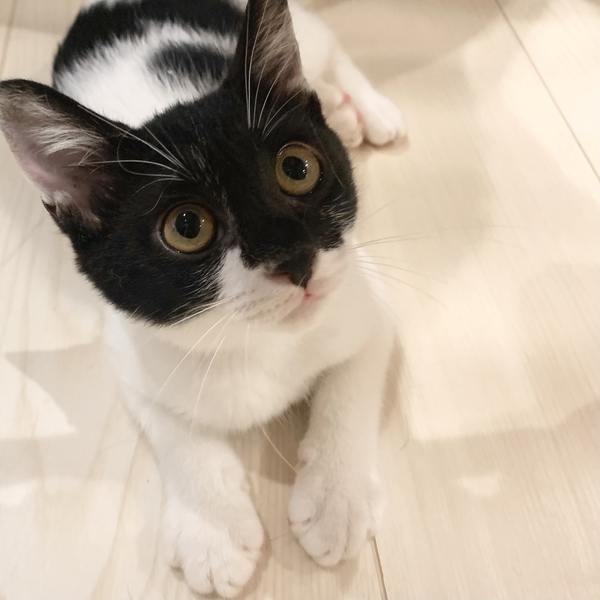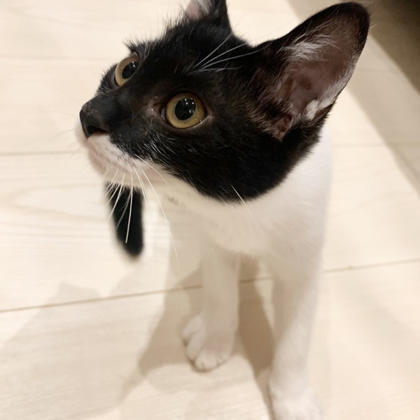 | 特徴(性格など) | 白黒の女の子です。 しっぽはまっすぐ長いです。 ヒト大好き、食欲旺盛、元気いっぱい遊びます。 大変人懐こく、抱っこすると盛大にゴロゴロ言ってくれます。 トイレ覚えています。 いまのところ問題行動はありません。 ・ワクチン2回接種済み ・FIV、FeLV検査 陰性 ・検便、駆虫済み ・マイクロチップ装着済み 風邪気味の時期もありましたが、今は良くなりました。 とっても元気です! |