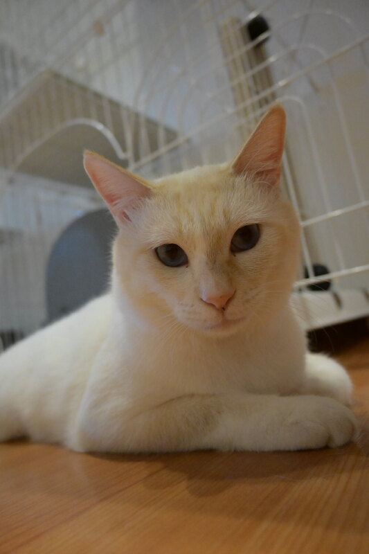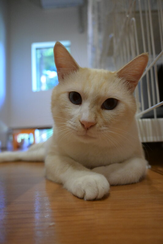 | 特徴(性格など) | 大人しく人が大好き。すりすりゴロゴロちゃんです。 抱っこもできます。野良生活が長かったにもかかわらず穏やかな子です。 |