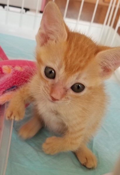 | 特徴(性格など) | 目がくりくりでとてもキュートな茶トラの女の子です。生まれつき手に障害がありますがトイレもうご飯を食べる事も普通の猫ちゃんと変わりません ジャンプは出来ませんが不自由な手でも一生懸命走って来ます 障害に理解のある里親様を募集しております! |