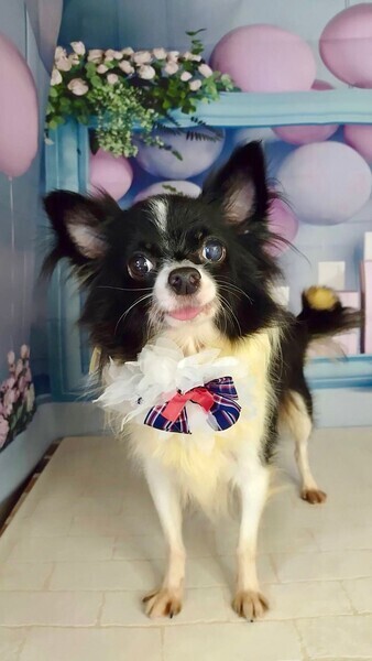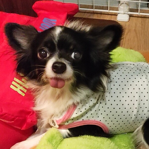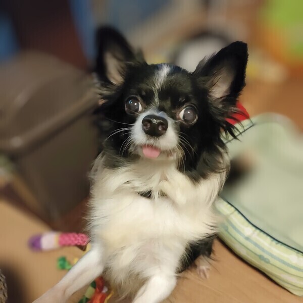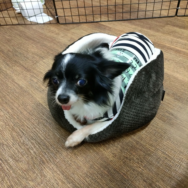 | 特徴(性格など) | 【仮名】花岡町(はなおかちょう) 【犬種】ロングコートチワワ 【カラー】ブラックタン&ホワイト 【体重】4キロ 【性格】 穏やかな子です。人が大好きで歩くと足の間に挟まってきます。わんこ同士もトラブル無く過ごしています。おもちゃで楽しく遊びます。好きなおもちゃはベッドに隠したり持ち歩きます。膝に乗るのが好きで、撫でると嬉しくてすぐにヘソ天します。 【ご飯】 朝晩の2回。ドライフードがメインですが手作りご飯もなんでもよく食べます。 【お散歩】 車通りの少ない住宅街や公園で練習中です。まだ自分が好きなようにウロウロしていますがお外は大好きでドッグランではいきいきします 【お留守番】 自分から好んでキャリーやサークルに入り静かにできます。 【トイレ】 失敗もありますがトイレシートに出来ています。おむつ併用中です。 【その他】 9月9日に避妊手術が済みました。 心雑音があり朝晩のご飯にお薬を混ぜて飲んでいますが、咳は無く普通に過ごしています。2022年9月2日に保護。 |