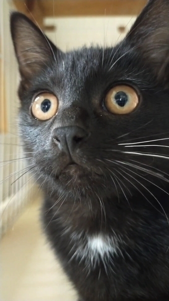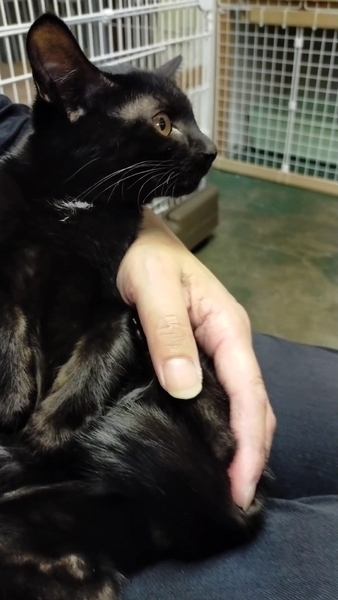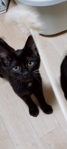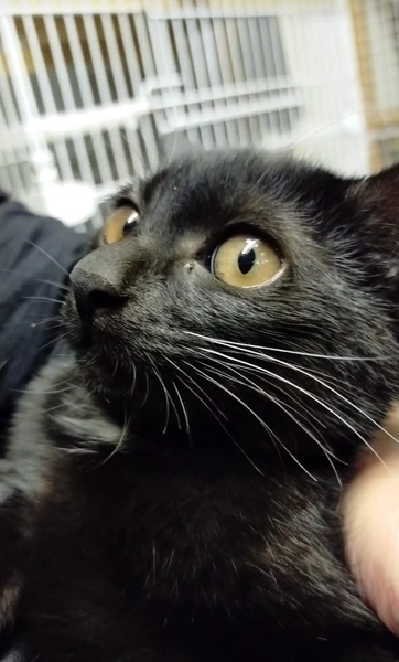 | 特徴(性格など) | 「治療の必要が無い仔猫です。」獣医師さんから言われましたが、 野良猫が沢山いる場所からの保護でしたので、 猫風邪ウイルスは、持っていると お考え下さい。 胸とお腹に、一部白い毛がある黒猫ちゃんです。 ネコジャラシにも、早くに反応するなど、人馴れも早い子です。 捕獲から、今まで一度も手をわずらわす事は、ありませんでした。 猫エイズウイルス=陰性 猫白血病ウイルス=陰性 3回、検便しました。何れも未検出 10/11 体重=1.32kg ウンチは、しっかり固まったウンチをします。 指定のキャットフードは、ありません。 |