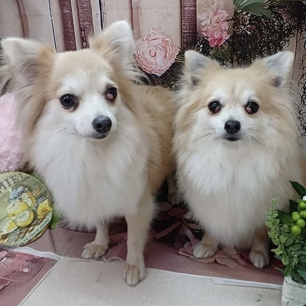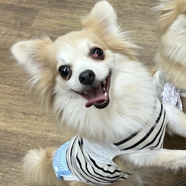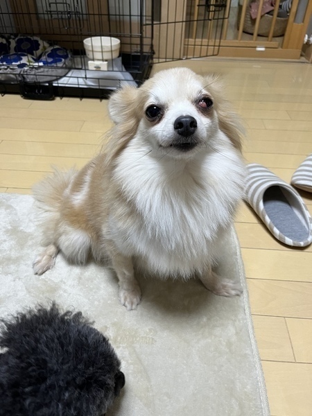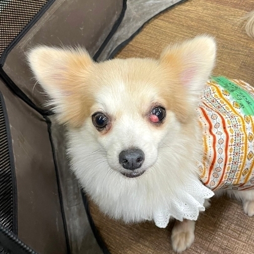 | 特徴(性格など) | 【仮名】 与野(よの) 【犬種】 ポメラニアンミックス 【カラー】 オレンジ 【体重】 4.5キロ 【性格】 初めの数日はビビリでこもっていましたが、慣れるとそばで寛いでいたり付いて回ったりします。男の人が少し苦手で近付くと逃げる時もあります。他犬とは遊びに誘ったり一緒のベッドで寝たりして仲良くできます。 【ご飯】 ドライフードにウェットや茹でた野菜、肉、魚などをトッピングしています。なんでもよく食べますし早食いです。 【お散歩】 尻尾を振って楽しそうに歩いていますが、前方に人が見えると立ち止まってしまいます。少し待ってあげると歩き出します。他のワンコや人が近づいてくると後ろに下がってしまう時があるのでダブルリードが必須です。 【お留守番】 フリーで問題なく過ごしています。 【トイレ】 シートでできています。 【その他】 左眼がチェリーアイ(第三眼瞼腺脱出)です。 避妊手術の際に元の位置に戻し縫い合わせる手術をしましたが、まだ出てしまいました。 この治療をしても再発の可能性があります。 (以前は飛び出した第三眼瞼腺を切り取る処置でしたが、涙を作る大切な器官を切り取ることになりドライアイになるため、今はこの処置をすることはありません) 今は気にする様子もないので、目薬など使っていません。 一緒に保護された大宮とは姉妹です。 |