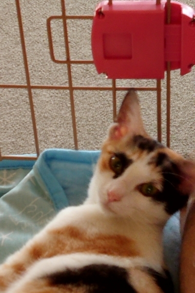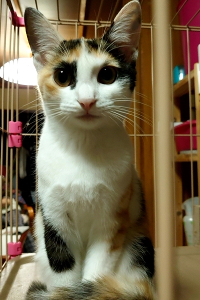 | 特徴(性格など) | 甘えん坊でおとなしい、少し人見知りをする三毛猫の女のコです。 | ||