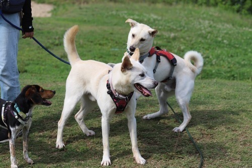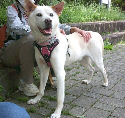 | 特徴(性格など) | ●仮名「マシュ」君です。 ●細身・足長、スタイル抜群、現在の体重22キロ前後、紀州犬風のかっこいいワンコです。 ●人が大好き! 「オスワリ」「お手」「おかわり」「フセ」「待て」を完璧にビシッと決めてくれます。 特にリーダー的に関ってくれる人にとても従順で、甘えたで気のいい、可愛いわんちゃんです。 ●当初は、お散歩の時にリードをしっかり持って教えてあげないと、好き勝手にぐいぐい引っ張っていく傾向がありました。 特に鳥や猫を見たり、自転車・バイク等、動く物が視野に入った時などに急に反応して追いかけようとすることがありましたが、元々 人に従順な気質のわんちゃんなので、きちんとリーダーシップをとってあげたら、リードを持ってくれた人に忠実でコミュニケーションを取ろうとする可愛くて素敵な犬です。 ●トイレは完全外派です。 ●食欲旺盛、元気で健康です。 ●ノミダニ駆除、虫下し、フィラリア予防薬投薬済み。 ●<2023年3月追記>眼科専門医の診察で、進行性網膜委縮症と診断されました。 手術や投薬などの治療法はありませんが、逆に医療の必要がないので、ありのままのマシュを受け入れて一緒に楽しく過ごして頂けたらと思います。 視力が落ちてきている状況を、本犬は一向に気にすることもなくいつも前向きで明るさは失わず、庭で虫を追いかけたり、人とお散歩するのを楽しみに生活しています。 ●2025年度狂犬病ワクチン接種済み。 ●里親さんは決まるまでに、いろんな家庭での経験をさせてあげたいと思います。短期間でもかまわないので一時預かりさんも募集しています。 |