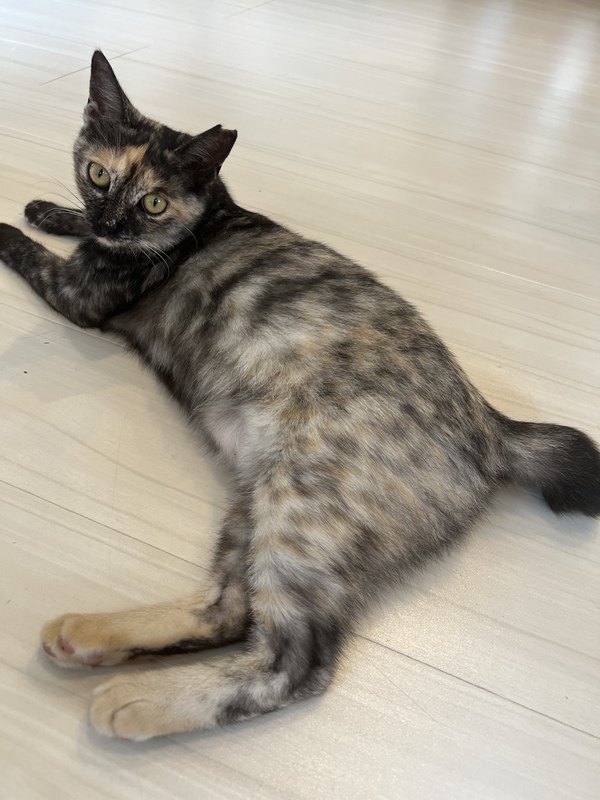 | 特徴(性格など) | ✳︎サビ柄 ✳︎とても臆病で警戒心が強いです。 最初は、シャーッとかウーッと言いますが、時間をかけて少しずつ慣れてくれます。 食欲旺盛で、おもちゃで遊ぶことが大好きです。 室内に迎え入れる際、病院にて一通り検査していますが、病気などはありません。 虫除去済みです。 |