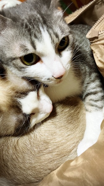 | 特徴(性格など) | シマシマ柄 ・賢い。 毛玉を吐いたり、お腹が空くと鳴きながら呼んできます。 ・人懐っこい。 人見知りはせず初めての人でも抱っこ出来ます。 白色と茶色の子 ・甘えん坊。 撫でていると手を掴みスリスリします。 ・臆病。 初めての人だと少し隠れてしまいますが、慣れるのは早い方だと思います。 2匹ともお風呂や爪切りは慣れていて大人しいです。 ドライヤーとブラッシングは苦手で少し怒ります。 |