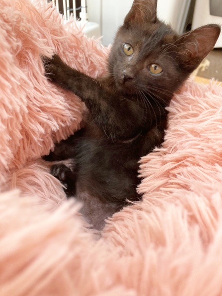 | 特徴(性格など) | *特徴 黒猫さんなのですが、毛がふわふわしているので、魔女の宅急便に登場する「ジジ」とはちょっとイメージが違う感じです(笑) もこもこしているので、ぬいぐるみ感満載です! 尻尾は長めでほぼ真っすぐです。 *性格 体力が回復してきたら、メキメキと遊びだしたそうです。オモチャも大好きでとても楽しそうに遊ぶお顔がなんとも言えずかわいいです。 兄弟仲良く、追いかけっこしたり取っ組み合いのけんかをして遊んでいるそうです。 ちょうど今の時期は、子猫さんの社会性が育つ時期になります。 取っ組み合いの喧嘩をしながら、甘噛みを覚えたり、追いかけっこしながら、動体視力を養っていきます。 猫さんとたくさん遊べる時間が取れてお留守番の短いお宅、一緒に遊べる先住猫さんがいるお宅、二頭一緒に迎えてくださるお宅を優先させていただきます。 ご理解くださいますようよろしくお願いいたします。 |