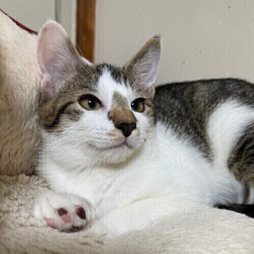 | 特徴(性格など) | 【仮名】ハロくん 【性格】ぶさかわ?泣き顔?なんとも表現しがたい表情のハロくん☆ 生後1か月ちょっとで保護したにもかかわらずパッパパッパ威嚇していましたが 今では1度膝の上に乗ったらなかなか降りない♥ 腕の中で眠ったり…と すりすりゴロゴロとっても甘えん坊さんになりました! よく食べて、元気いっぱい猫たちと走り回っています。 大人猫にも上手に甘えますので先住さんがいうお家でも良いですし 同世代にゃんこと一緒でも良いです。 とっても甘えん坊さんに成長しましたので お留守番の少ないお家でしたら1匹飼いもOKです! ※1ピキ譲渡応相談 |