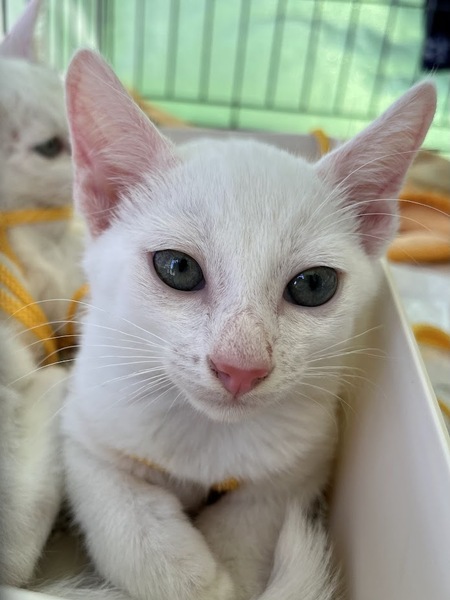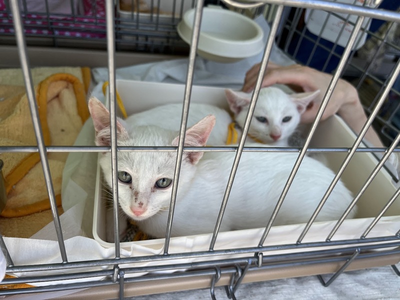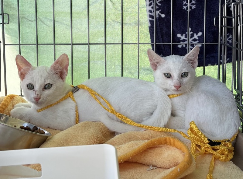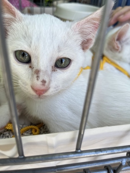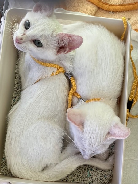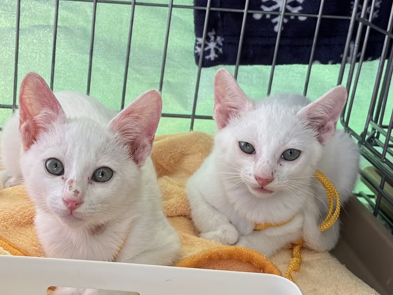 | 特徴(性格など) | 白猫の兄弟です。 人間にも慣れてゴロゴロ甘えるようになりました。 尻尾も長めです。 2匹兄弟でのお迎えも歓迎ですが、1匹ごとの譲渡も対応します。 |