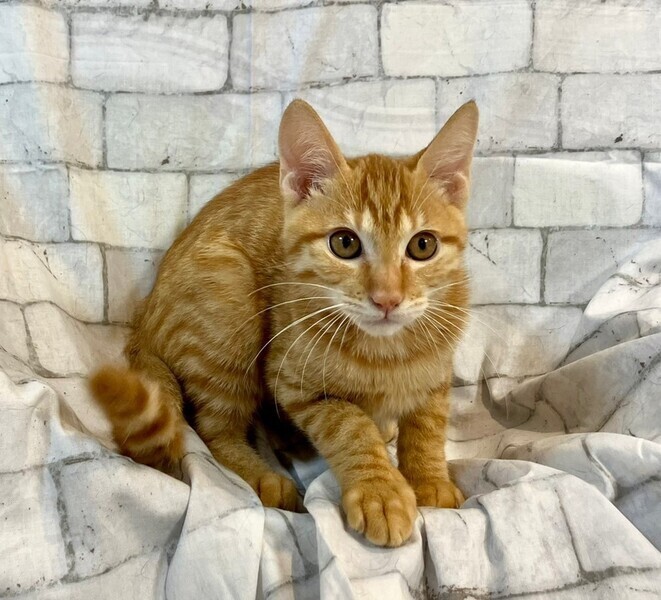 | 特徴(性格など) | 【仮名】オールマイトくん 【性格】人馴ればっちり甘えん坊なオールマイトくん♪ THE茶トラという性格(察してくださいw)な、可愛い男の子です。 遊びが大好きで、よく走り回って、よく食べて、よく寝ます。 ぜひ、遊び大好きなオールマイトの相手をたくさんしてあげてください♪ 兄妹一緒に遊ぶのが大好きなので兄妹のミルコちゃんか ホークスくんとペアで迎えてくれる方を希望します♪ ※1ピキ譲渡不可 |