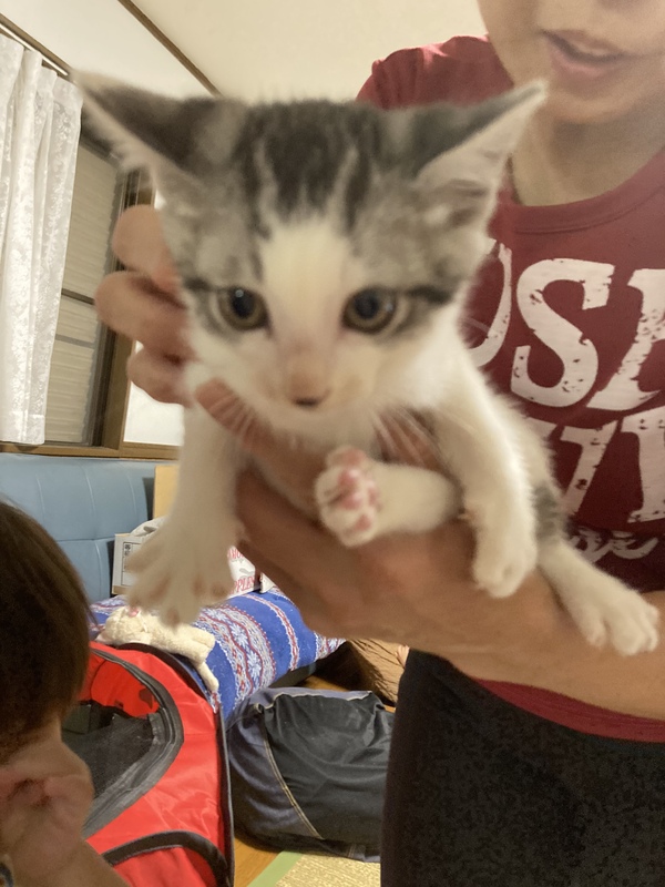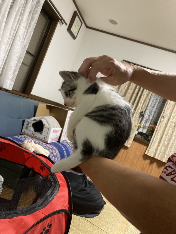 | 特徴(性格など) | まだ人に慣れていないため怖がりますが、 抱っこし、撫でることはできます。 健康状態は良好です。 9/30に動物病院でウイルス検査(-) 推定1ヶ月半とのことでした。 |