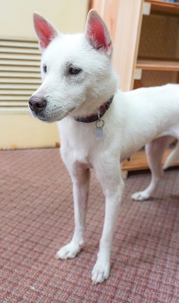 | 特徴(性格など) | 性格・特徴 【性格】 人の後ろをトコトコ付いて歩く、好奇心旺盛な女の子です。 マイペースで少しだけ怖がりさんなのでゆっくりと絆を深めていって下さい。 スタイル抜群の凛々しい姿に心惹かれます。 【ご飯】 ドライフード(シュプレモでお願いします)80gを1日2回食べてます。 フードは急な変更でお腹を壊さないようシュプレモでお願いいたします。 【お散歩】 お外に慣れる所から初めています。 引き続き、トレーニングお願いします。 迷子札は、首輪に刻印式のIDカラーで装着していただく事と、ダブルフック型ショルダーリード使用のお約束をお願いいたします。 突然の物音に驚き、逃げてしまう可能性があります。 そのため必ず当会指定のネームカラー、ハーネス、ショルダーリード、すり抜け防止器具(すり抜け防止器具は当会よりお渡しします)を必ずご準備の上お散歩をして下さい。 当会では、全頭に脱走防止対策を行っており、トライアル中は当会よりお貸しいたしますが、トライアル中に必ずご準備いただくようお願い致します。 お散歩も少しずつ慣れてきてますが、突然の物音に驚いて、首輪もしくはハーネスが抜けてしまう可能性があります。日頃のトレーニングと、ダブルリードの徹底を宜しくお願い致します。 お散歩等お出かけの際に、抱き上げるシチュエーションがあった場合は、リードや首輪やハーネスを一緒に握りしめたまま抱き上げて下さい。車でのご移動は必ずクレートやケージに、入れていただくようお願い致します。 【トイレ】 トイレシートで練習しています。気長にトレーニングお願いします。 トレーニングのご相談は承りアドバイスさせていただきます。 【お留守番】 サークルでお留守番できます。 (ソフトサークルは禁止とさせていただきます) 健康状態 ※ 医療に関しまして、当会では、里親様にお繋ぎするまでに、検査や手術、治療等のレスキュー団体で出来る最大限の努力の上で譲渡活動を行っております。ご理解頂ける方のみご応募ください。 名前 おしるこちゃん 犬種 ミックス 性別 女の子 年齢 3歳くらい(推定) 体温 38.0℃ 体重 10.1㎏ 皮膚 全身に皮膚炎が見られたため、薬浴と投薬治療をし改善しました。 掻き取り検査 異常なし 心雑音 1/6〜2/6 検便検査 異常なし 血液検査 異常なし フィラリア検査 陰性 避妊手術 済み 心電図 異常なし レントゲン 異常なし ノミダニ予防 済み 虫下薬 投薬済み(2022.9.3) ワクチン 接種済み(2022.8.30) 狂犬病予防接種 猶予証明書発行済み 畜犬登録 済み |