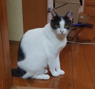 | 特徴(性格など) | 4月末から慣れさせて、今ではナデナデすると、とても喜ぶ子になりました。 ネコ大好きなので、先住猫ちゃんとも仲良くできると思います グレーのハチワレで、とても美人さんです |