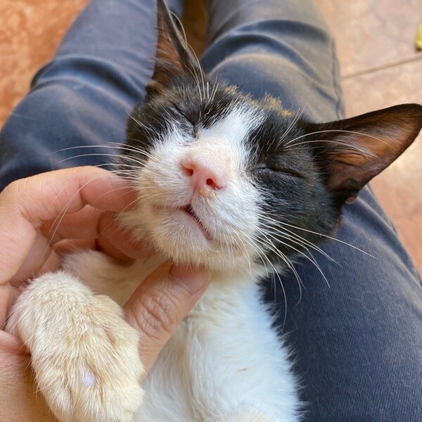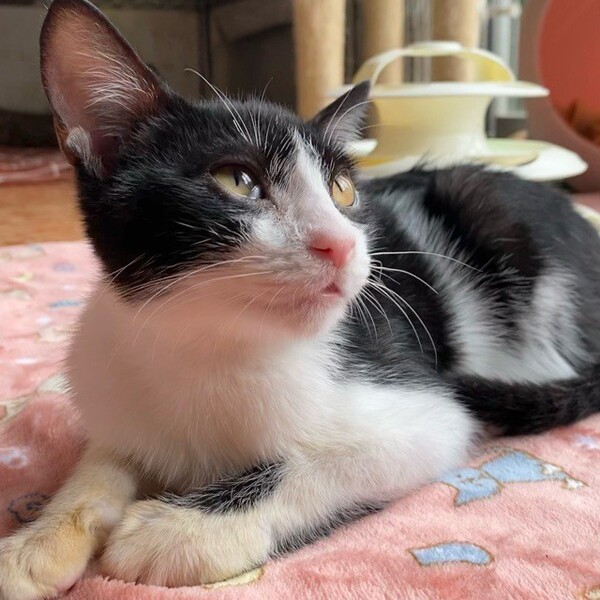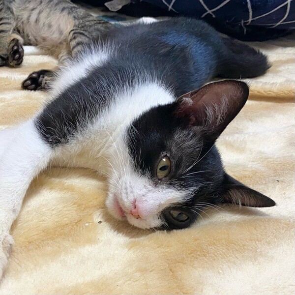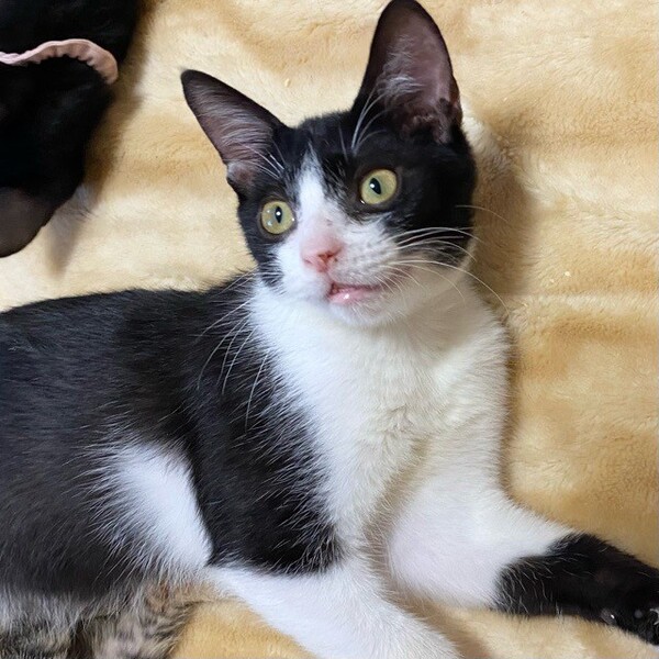| 特徴(性格など) | 天真爛漫な甘えん坊「三日月」くん❤ 人が大好き♪小さな猫ちゃんにも優しい男のコ♪ ちょっぴり寂しがり屋の慎重派です。 現在、ドライフードを24時間の置き餌として栄養補給、水分補給のため一日3回パウチを与えています。 <推定誕生日:2022年4月始め> |