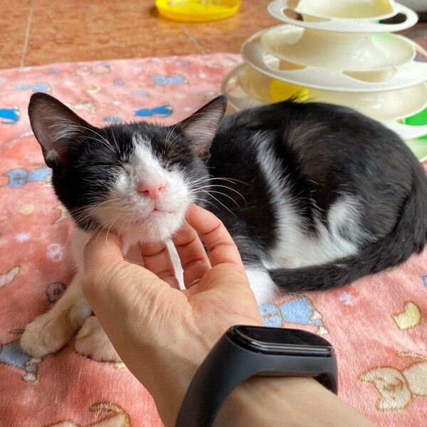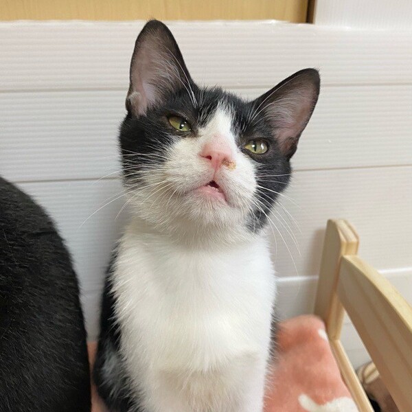 | 里親募集する理由 | 団体メンバー、車で移動中、道路の真ん中でふらふらしている子猫ちゃんを発見。 スピードを落として様子を見るも、逃げようとせず、車から降りて傍に駆け寄ると、目と口から流血、脱糞しながらクルクル回っている。 慌ててそのまま保護、動物病院に。 獣医さま診察、たぶんバイクなどの激突したのだろう、でした。 目も口もパンパンに腫れ、本来しない口呼吸をしたため胃の中も空気でパンパン。 レントゲンの結果、あごの骨を骨折。 急遽、酸素室で対処、鼻からチューブにて強制給餌でした。 一時期は、厳しい!との診断でしたが、多くのご支援者さま始め、獣医さまの手厚いケアのお陰で、後遺症も一切なく、元気になってくれました。 このコの15年20年、一緒に幸せになって下さるご家族からのお迎えお待ちしております。 *団体HP:https://oneheartosaka.wixsite.com/oneheart *フェイスブック: https://www.facebook.com/OneHeartOsaka *インスタグラム:https://www.instagram.com/oneheartosaka/ *団体ブログ:https://blog.goo.ne.jp/oneheartosaka *団体譲渡会実施<コロナ影響のため時間予約制> 場所:〒589-0001 大阪府大阪狭山市東野西2-835-4 or CHAKRA(大阪市北区菅原町6-12) |