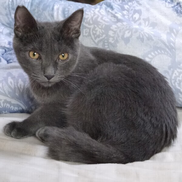 | 特徴(性格など) | 全身グレー色、しっぽの先はクルンと丸まっています。 体はがっしりとして子猫らしい遊び方ですが、 性格は控えめで誰かに譲ってしまうタイプ。 控えめでけなげなところがあります。 猫エイズ、白血病ウィルス 陰性 ワクチン2回接種 駆虫済み |