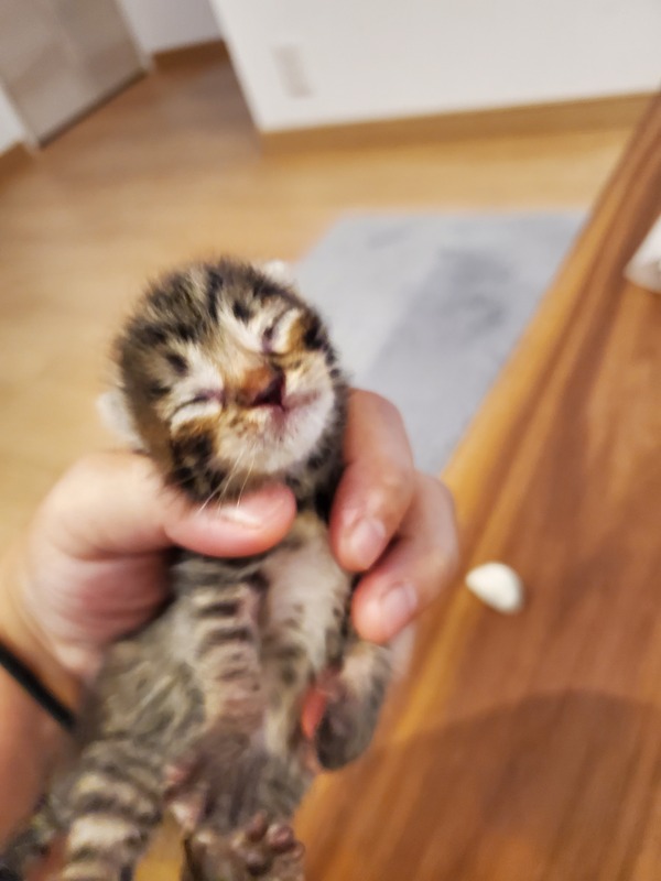 | 里親募集する理由 | 野良猫が育児放棄したため保護致しました。 私は猫アレルギーのため飼えません。 |