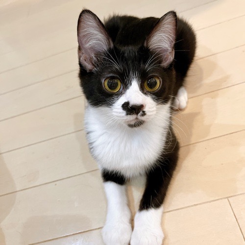 | 特徴(性格など) | ちょびひげ軍団のひとり、ちょびこちゃん。 お口の模様がとくにちょびすけくんとそっくりですが、 あごが白いのがちょびこちゃんです。 まだ少し慎重なところがありますが、遊ぶのは大好き! おもちゃへ飛びつくときも素早く、 そこから逃げるときもまた素早く、 そのすばしっこさはまるでくのいちのようです! ついつい逃げ腰になってしまう彼女ですが、 撫でるとまんざらでもなさそうにしてくれます。 少しずつ心を開いていってくれていますので、 これから甘えんぼうさんになると思います♪ 身体能力は高めで、好奇心がとても旺盛ですので、 脱走対策や安全な環境をご準備してお迎えいただけると嬉しいです! 仲良しでそっくりなちょびひげ兄妹たちと、 一緒のお迎えも大歓迎です♪ |
