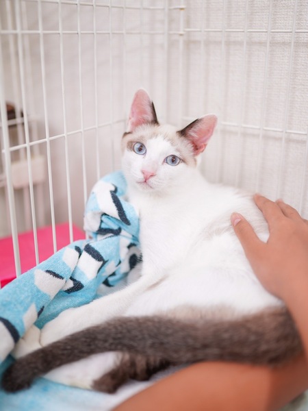 | 特徴(性格など) | シャム系柄のスリゴロ甘えん坊イケメン。毛色も綺麗で優しい色合い。 抱っこも出来ます。人見知りも猫見知りもなく、すぐに仲良くなれること間違いなしです。 癒し系男子と楽しいニャンライフをしたい方にピッタリニャンコです。 検便、ノミダニ虫駆除済、ワクチン1回目接種、エイズ白血病ウイルス検査(陰性)、健康状態良好、 デベソ手術をしました経過良好のため里親様募集開始しました |