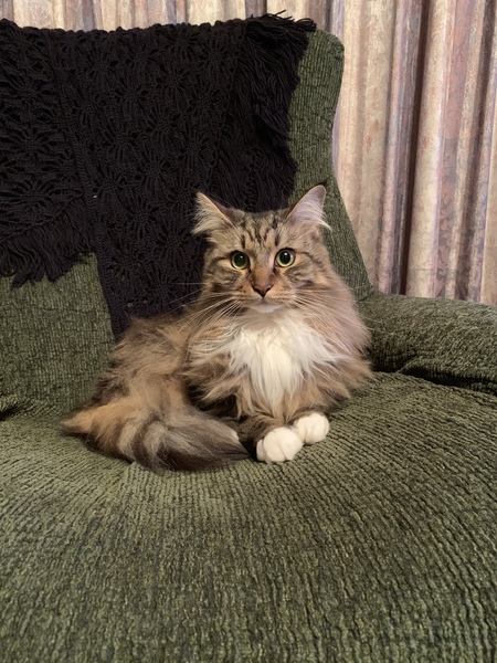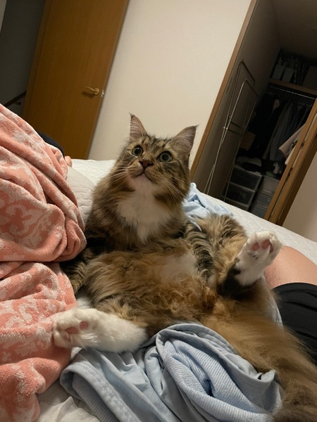 | 特徴(性格など) | ブラウンダビーアンドホワイト 基本的には温厚で、臆病な性格。甘えん坊ですりすりしてきたり、撫でてと寄ってきます。フミフミゴロゴロいいます。大きな音、小さな子供は苦手です。抱っこはあまり好きではありませんが、ぴったり身体をくっつけることは好きで寄り添ってきます。体重6.6キロです。マイクロチップ済み、血統書あります。 ご飯をあげる時におすわりとたっちができます。 |