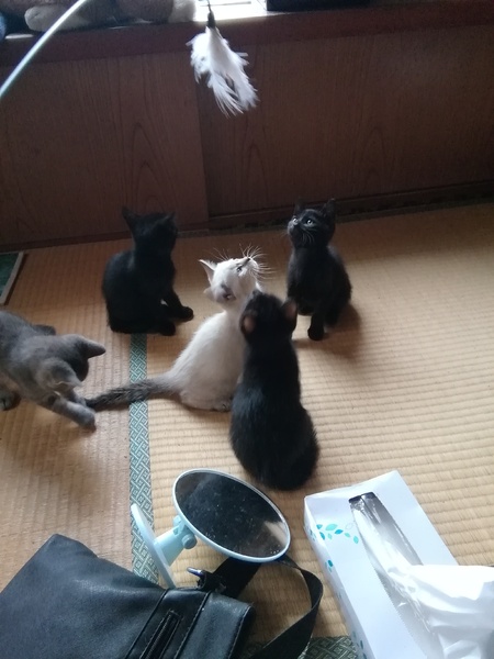| 里親募集する理由 | 2年以上行方不明だった黒猫が戻ってきたのですが、いつの間にか6匹も生まれてしまいました。 | ||