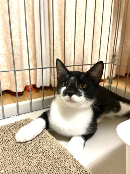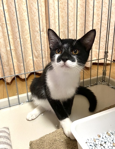 | 里親募集する理由 | 地域猫活動中に保護しました。 母猫は避妊手術を済ませました。 保護してから約2ヶ月、ケージで家猫修行をさせました。 トイレ、フード問題ありません。 段ボールの爪研ぎでちゃんと爪研ぎします。 自分の年齢では、保護はできても飼ってあげる事ができない為、里親募集させていただきました。 |