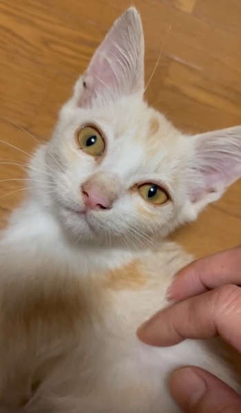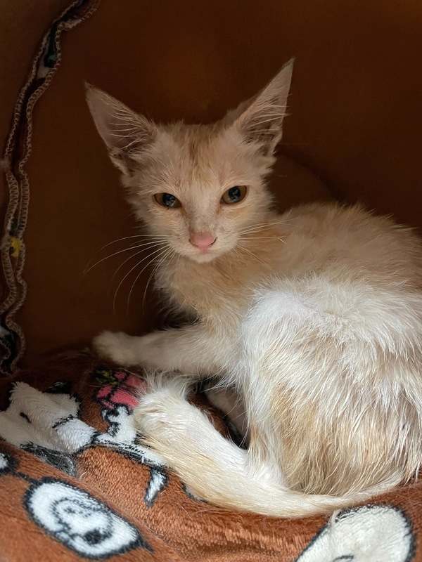 | 特徴(性格など) | ・クリームがかったパステル色の茶トラ ・おっとりとした仔猫です。 ・まだ小さくおよそ生後2ヶ月ではないかと思います。 ・シャンプー仕立てで毛がまだパサついてます。(写真) |