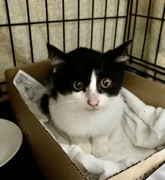 | 特徴(性格など) | ハチワレでカギ尻尾の赤ちゃん猫です。 とっても人懐っこい甘えん坊の男の子。 今は爪を出すようなこともありません。 ごはんもよく食べ元気です‼︎ 愛情たっぷりで育ててくれる家族を探しています‼︎ |