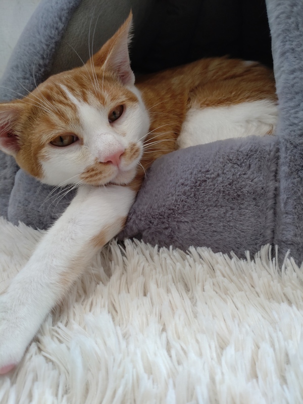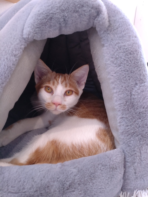 | 特徴(性格など) | きれいな茶白の模様が魅力的。環境の変化の慣れるまでは時間がかかりますが、適応してくると本来のベタベタな甘えん坊になります♪とても良い子です。 | ||
