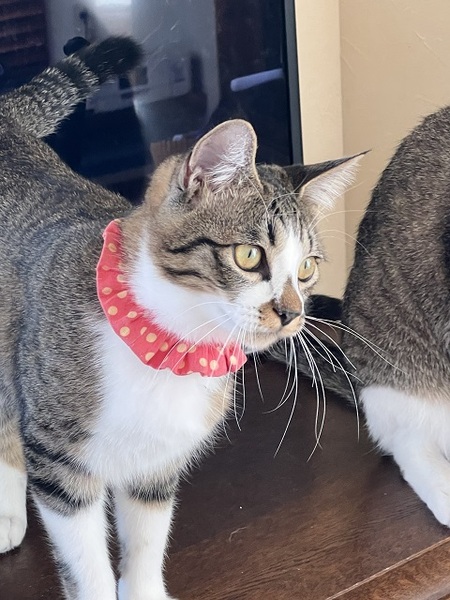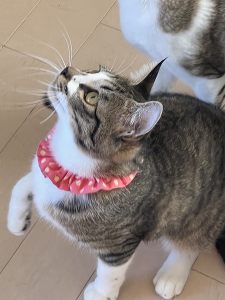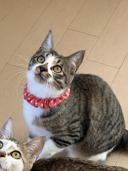 | 特徴(性格など) | ☆☆☆ご希望の方は、以下のアンケートフォームにご記入の上、送信してください☆☆☆ ねこ親希望アンケート→ http://chibawan.net/contactform_cat 【猫No】3567 【愛称】ひろむ 【性別】メス 【年齢】8ヶ月(22/08頃生) 【毛色】キジ白 【体重】4.0kg(23/04/08現在) 【状態】ノミダニ駆除済、駆虫済、ワクチン接種済(22/10/29)、血液検査済(エイズ-・白血病-)、トイレ躾済、不妊手術済(23/01/09) 【預かり場所】東京都八王子市 【日記】22/8/27~22/9/18 Instagram @chbisukehaha (https://www.instagram.com/chibisukehaha/) 22/9/18~ Instagram @nicomama9 (https://www.instagram.com/nicomama9/) 【経緯】柏市動物愛護ふれあいセンターから引き出しました 【性格】綺麗な大きな目と濃いグレーのキジが美しい女の子です。 朝ケージを開けると、まずゴハンを食べて、それからみんなの運動会に加わるくいしんぼうです。 食欲旺盛でドライフードだけでも、ウエットを混ぜてもおいしそうに食べています。 姉妹のいちご、先住猫と走り回ったりニャンプロしたり楽しそうに暮らしています。 ひとりでケージの上でお昼寝したり、ちょっと寂しいと控えめに人を呼んだりします。人見知りなので、直ぐになつく訳ではなさそうですが、甘ったれなので問題ないと思います。なれるとゴロゴロと甘えます。 先住猫とは楽しく遊んだり、一緒にお昼寝したりしてます。犬には自分から近寄ることはほとんどないですが、うまく付き合うことが出来ています。先住猫、先住犬がいるご家庭でもなじむことが出来そうです。 姉妹のいちごと毎日楽しく遊んでいますので、いちごと一緒に迎えてくださる方を希望します。 【その他】完全室内飼育で終生愛情をもって飼養してくださり、ひろむに合った生活スタイルで暮らしてくださる方、脱走対策に最新の注意を払い、労を惜しまず入念に脱走対策を講じてくださる方、定期的なワクチン接種、必要な医療処置等の健康管理をお約束していただける東京近郊の方からのお問い合わせをお待ちしています。 大変申し訳ありませんが、子猫のため、55歳以上の方からのお申し込みはお断りすることがございますので、ご了承ください。 |