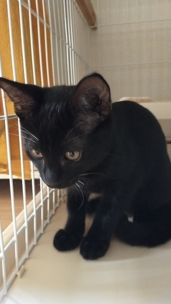 | 特徴(性格など) | ♡10/7時点で、体重=2.04kgと、体格が良い割には、 小柄な兄妹猫の後ろに、隠れて、シャーシャーと威嚇しても、 噛んだり、引っ掻いたりする事が、出来ない臆病者です。 人の気配が無くなると、激しく遊び始めます!内弁慶? 食欲旺盛!食べた分だけ大きく成長中? 保護時、左目に目ヤニが、出ていましたが、4回の点眼で改善。今は、出ていません。 しかし、野良猫が沢山いる場所からの保護でしたので、 猫風邪ウイルスは、持っていると お考え下さい。 ※猫エイズウイルス=陰性 猫白血病ウイルス=陰性 お腹の虫=検便は、3回しました。3回とも未検出です。 ※ウンチは、若干、軟便になりやすい為、マグネシウム値が、低いキャットフードを与えています。(0.081%以下) |