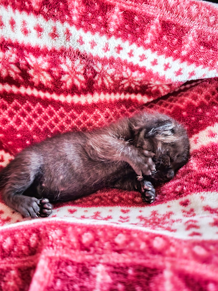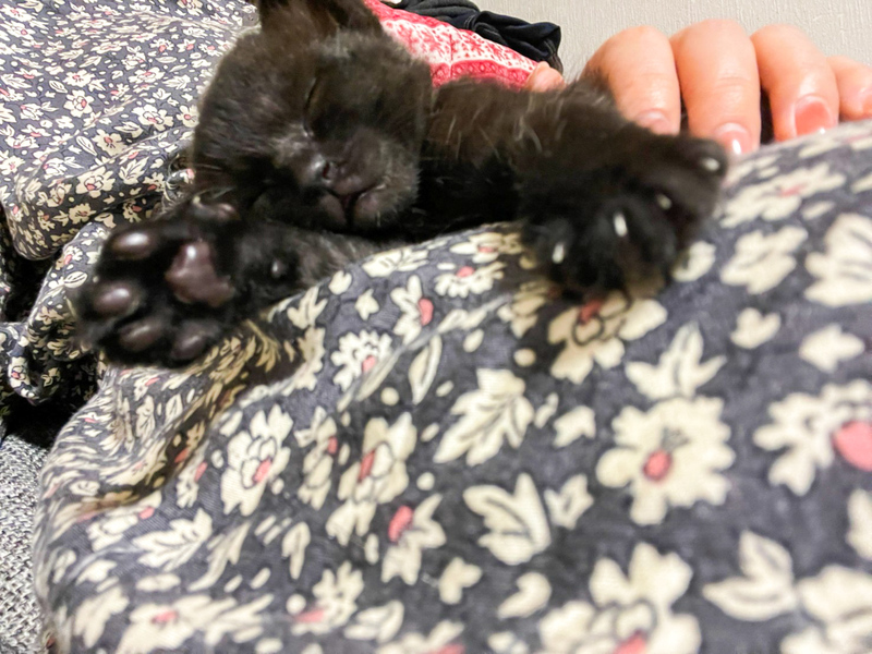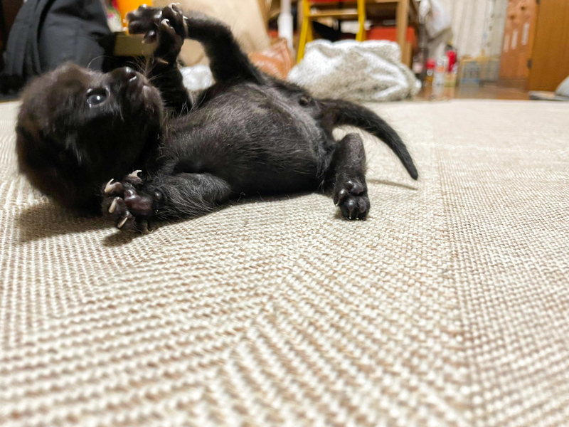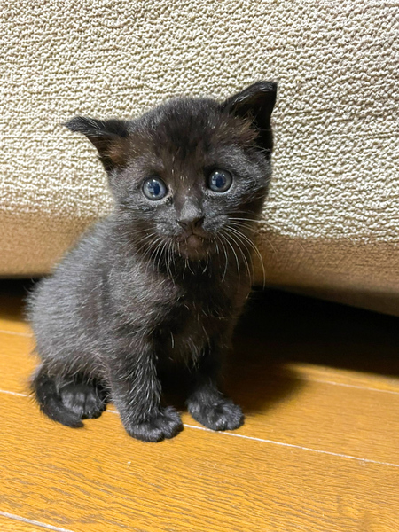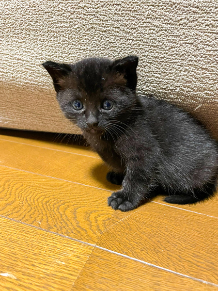 | 特徴(性格など) | とても人懐こい子猫です。保護したのは生後2週間位でしたが、2日ほどでトイレもマスターしました。とても賢い子です。私が忙しくかまえない時でも1人でコロコロと遊んでいます。今まで色々子猫の保護をしていましたが、幼いうちから家猫に向いている気質な気がします。 目が少しブルーです。綺麗なスッとした長い尻尾です。 |
