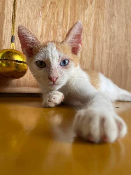 | 特徴(性格など) | 白キジでオッドアイという珍しいかわいい猫です。 | ||