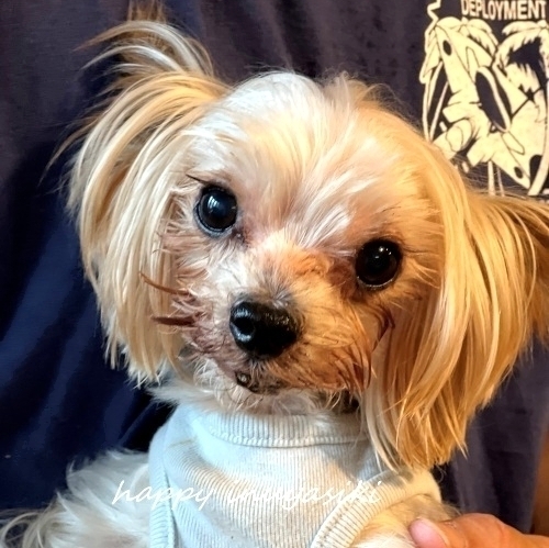 | 特徴(性格など) | 【仮名】 左門(さもん) 【犬種】 ヨークシャーテリア 【カラー】 スチールブルー&タン 【体重】 1.7キロ 【性格】 ケンカを売られたら小さいながら買います。でも、慣れた仲間とは仲良く過ごしています。基本はとても甘えん坊です。 【ご飯】 今は手作りメインですが、缶詰め、ドライフード、なんでもよく食べます。 【お散歩】 超多頭のため連れていけません。お庭で遊ぶ程度です。 【お留守番】 お留守番は基本ほぼありませんが、フリーでもサークルでも問題なくできるようです。 【トイレ】 ほぼトイレでできていますが、環境が変わると最初から練習になるかもしれません。 【その他】 保護時は肝臓の数値が高かったため、様子を見ていました。 小さくて甘えん坊の可愛いおじさんです。 |