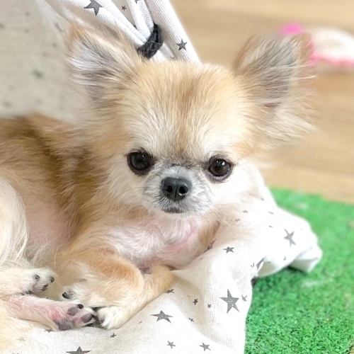 | 特徴(性格など) | 【仮名】 美倉町(みくらちょう) 【犬種】 ロングコートチワワ 【カラー】 ブリンドル 【体重】 1.7キロ 【性格】 犬にも人にも基本フレンドリーな元気娘です。 【ご飯】 今は手作りメインですが、アレルギーがあるのか被毛の状態が悪いので、お魚メインのご飯で経過観察中です。 【お散歩】 超多頭のため連れていけません。お庭で遊ぶ程度です。 【お留守番】 お留守番は基本ほぼありませんが、フリーでもサークルでも問題なくできるようです。 【トイレ】 ほぼトイレでできていますが、環境が変わると最初から練習になるかもしれません。 【その他】 皮膚の状態がけっこう悪いのでケアが必要です。 そこまで痒がったりはしていませんが、食事はお魚系にして様子を見ています。 |