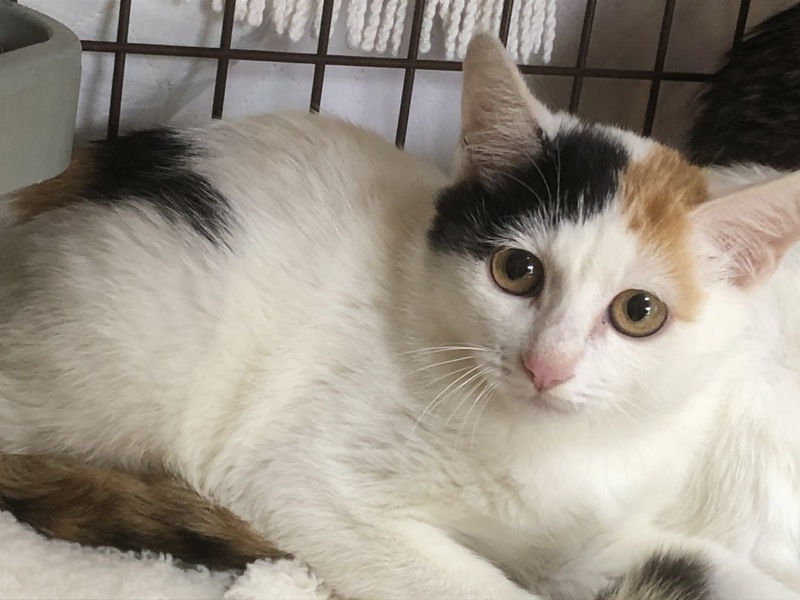 | 特徴(性格など) | 全体的に白が多い三毛猫です。 まだ警戒心が強いのですが、だんだん慣れてきています。 |