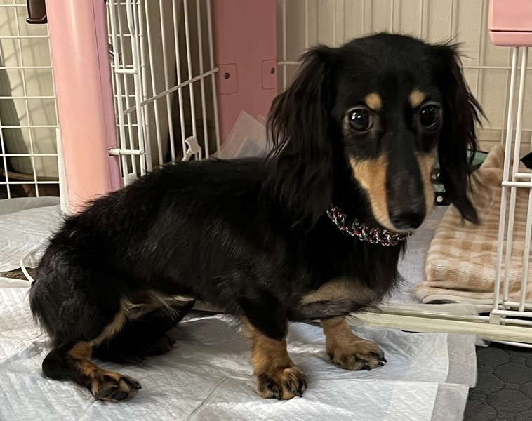 | 特徴(性格など) | 【プロフィール】 ・名前 うめこ ・性別 メス ・犬種 ミニチュアダックスフンド ・年齢 1歳 ・毛色 ブックタン ・体重 2.91kg 【性格・日常】 ・性格 とても怖がりで人や環境に慣れるのには時間がかかります。少しずつ色々な物に興味が出てきている様子もあるので、本来は好奇心旺盛な性格だと思います。 ・トイレ ケージ内では限界まで我慢してシートでします。現在はケージから自ら出てくる事は稀なので1日に数回、別室や庭に連れて行き(ケージに戻ることのできない環境)シートを敷いてそこで促すと比較的スムーズです。シートの認識はあるようです。 ・散歩 これから練習します。 ・留守番 ケージで落ち着いています。 ・就寝時 ケージで大人しく寝ています。 ・お手入れ 怖がりなので苦手ですがさせてくれます。固まって動きません。 ・犬との関係 会わせていないので不明です。 ・人との関係 男女問わず警戒します。自ら近づこうとはしません。人が近づくと緊張して身構えケージの端に張り付きます。最近は人の手から食べ物を食べたり、時折手を舐めてくれることもあります。攻撃性はみられていません。 【適した飼育環境】 ・初めて犬を飼う △ ・先住犬がいる △ ・集合住宅 ○ ・お留守番が長い ○(現在は1日3〜4回食なので長時間の留守番は経験ありません。) ・乳幼児がいる ✖️(大きな音や声は苦手です。) ・高齢者がいる ○ 【これまでに行った医療】 ・混合ワクチン 済み ・狂犬病ワクチン 済み ・血液検査 済み ・フィラリア検査 陰性(-) ・便検駆虫 済み ・避妊去勢手術 済み ・歯石除去 済み ・マイクロチップ装着 済み 【健康状態】 現在のところ良好です 【必要な継続医療】 特にありません 【預かりブログ】 日々の様子はこちらから⇒ https://ameblo.jp/karenmamasana/ 【預かり先】 神奈川県 横須賀市 |