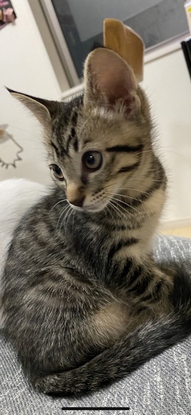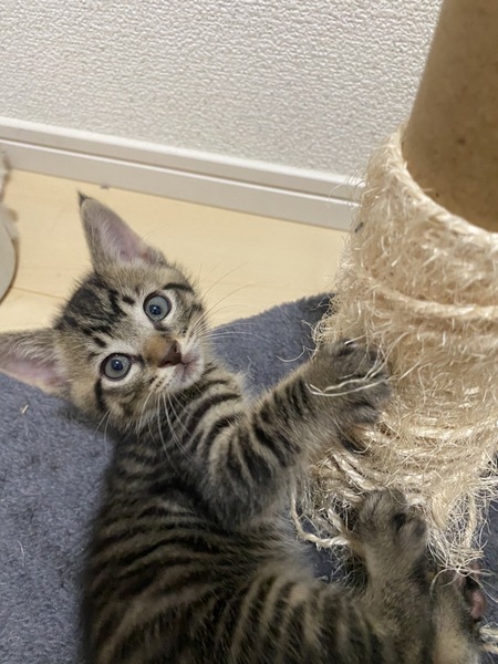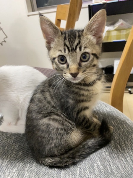 | 特徴(性格など) | 食べるの遊ぶの大好きで、ひとり遊びも上手ですが人に遊んでもらうのも大好きです!人懐っこくて膝の上に乗り甘えてきます! 検便、ノミダニ駆除済み、エイズ、白血病ウイルス検査陰性 3種混合ワクチン1回接種済み |