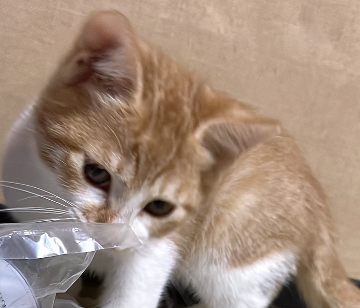 | 特徴(性格など) | 背中の白がチャームポイントの活発な茶白ちゃんです。 よく食べ、よく遊び、よく寝ます。 |
