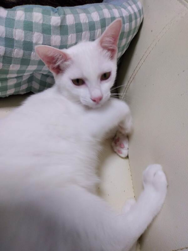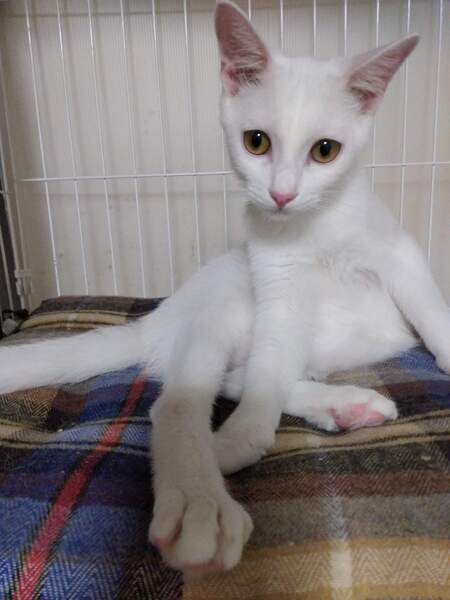 | 特徴(性格など) | とても人が好きで甘えん坊です。 爪を出したり噛んだりはしない穏やかな性格です。4 おもちゃ遊びも大好きです。 真っ白で尻尾はストレートです。 |