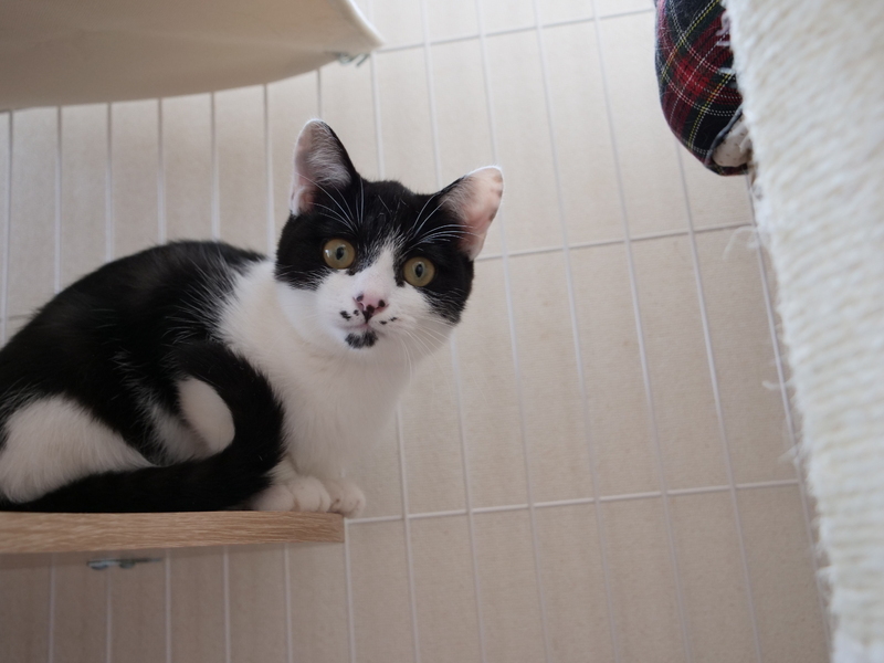 | 特徴(性格など) | 白黒ハチ割れ・ごま髭のゴマちゃんです。しっぽは少し縞が入っています。多分メスです。 好奇心旺盛で、ごはんもモリモリ食べています。おもちゃで良く遊びます。 9月末に保護し、まだあまり人慣れしていません。抱っこは出来ませんが、少しずつ人が触れるようになってきています。 愛情を注いでゆっくり慣らしていただける方を募集します。 10月28日に不妊手術とワクチン接種を予定しています。性別も判定してもらうので、後日情報更新します。 |