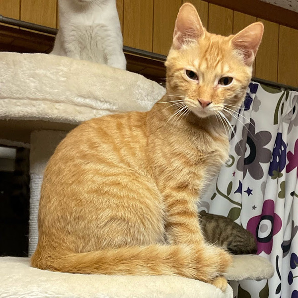 | 特徴(性格など) | 少し臆病なところがあり 最初は隠れてしまうかもしれませんが、 茶トラ気質はあるのでおおらかです。 オモチャやオヤツが大好きです。 |