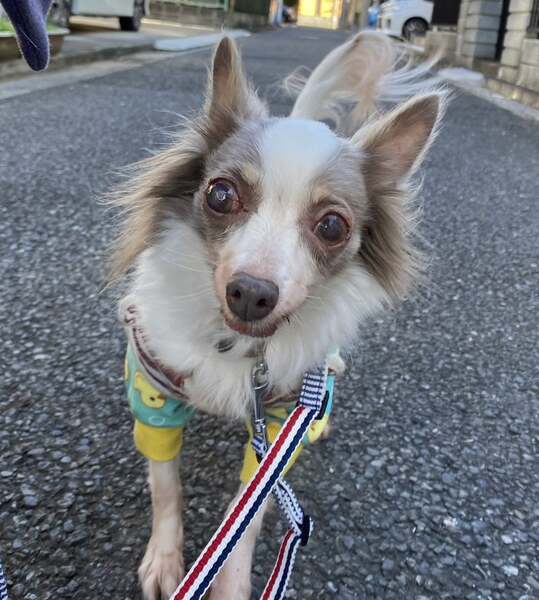 | 特徴(性格など) | 【プロフィール】 ・名前 想(そう) ・性別 メス ・犬種 チワワ ・年齢 11歳 ・毛色 イザベラタン&ホワイト ・体重 4.3kg 【性格・日常】 ・性格 男性より女性の方が好きです。賑やかな環境より静かに過ごすのを好みます。片目が見えていないので、時々物音にびっくりすることがあります。 ・トイレ シートで保浦できますが時々マーキングすることがあります。 ・散歩 上手に歩けます。外に出るのも好きです。 ・留守番 フリーでもできますが、サークルのほうが落ち着いて出来ています。 ・就寝時 別室のサークル内で朝まで寝ています。 ・お手入れ シャンプー、ブラッシングおとなしくできます。目薬を毎日つけていますが大人しくてさせてくれます。 飲み薬もご飯と一緒に食べてくれます。 ・犬との関係 他犬とあまり関わろうとはしませんが揉めたりする事も無く友好的です。元気な犬は苦手なようです。 ・人との関係 男性が少し苦手で最初は怯えますが時間をかければ慣れます。。慎重派なのでフレンドリーではないですが慣れてくると甘えてきます。誰にでも甘えるいうよりは特定の人に懐く傾向があります。 【適した飼育環境】 ・初めて犬を飼う ○ ・先住犬がいる ○ ・集合住宅 〇(人が出入りするときだけ少し吠えます。吠えると声は大きいです) ・お留守番が長い ○ ・乳幼児がいる ○ ・高齢者がいる ○ 【これまでに行った医療】 ・混合ワクチン 済み ・狂犬病ワクチン 済み ・血液検査 異常なし ・フィラリア検査 陰性(-) ・便検査 陰性(-) ・避妊去勢手術 済み ・歯石除去 済み ・マイクロチップ挿入 済み 【健康状態】 ・僧帽弁閉鎖不全ステージb2 1日2回薬を飲んでいます ・淡色被毛脱毛症による脱毛が所々にあります ・傷により高眼圧になっているため右眼の視力はほぼありません。左眼も傷があるので両眼に1日3〜4回の点眼が必要です。 【必要な継続医療】 心雑音があるので定期的に受診する必要があり1日2回の投薬が必要です。 眼の傷の治癒と視力温存の為に点眼が必要です。 【預かりブログ】 日々の様子はこちらから→ https://ameblo.jp/reiyomoimo/ 【預かり先】 神奈川県 横浜市 |