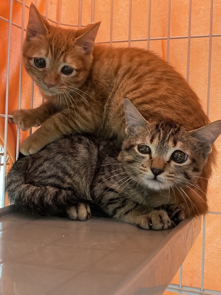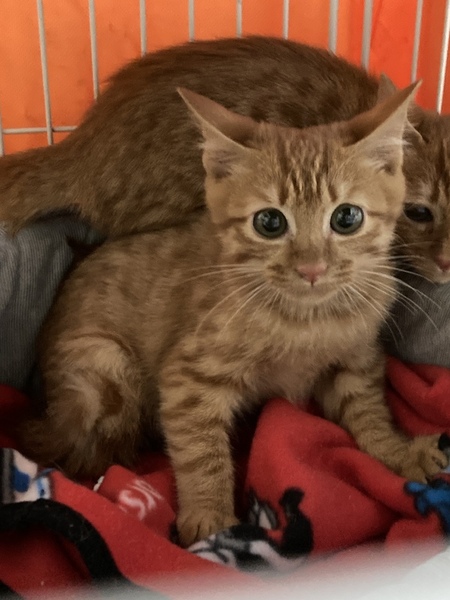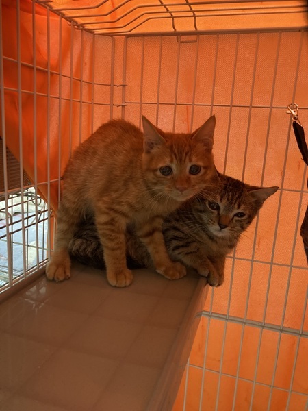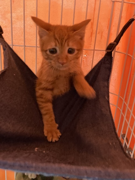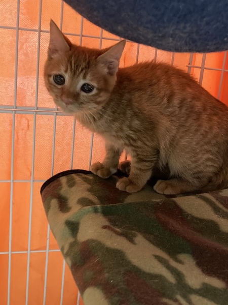 | 特徴(性格など) | チャトラのメス、推定生後2ヶ月齢の子猫です。 10月11日の測量で1.35kgでした。 ジト目が不安げでとてもかわいいです。 野良猫の子供なので警戒心が強く、怖がりで人慣れが不十分です。 |